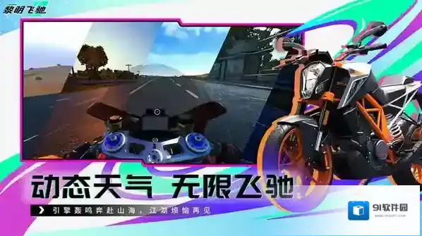 拥有多样的摩托车,不同摩托车的性能不同,可以自由驾驶。