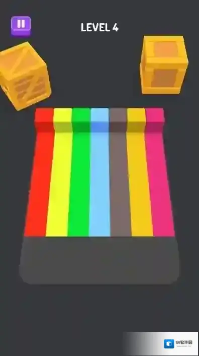 2、关卡玩法进入LEVEL4、5等关卡,需折叠彩色长条、方块,按箭头指引移动拼接,组合成目标形状,考验空间思维。