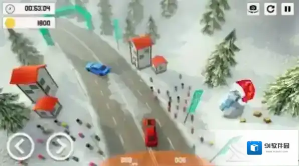 1、在赛车游戏比赛中,按箭头指引,驾驶红色赛车沿山路赛道行驶,超越对手。