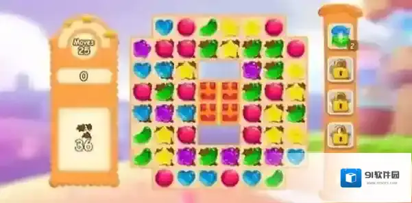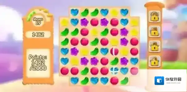 1、向右滑动消除相同,通过一次消除触发多个特效糖果获得额外奖励,利用连续完成高难度关卡触发”糖果大师”状态,通过暂停功能标记关键位置。