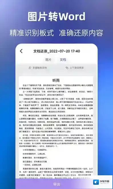 文字提取支持识图取字,通过智能扫描取字和字体识别,提取图中文字,还原文档样式