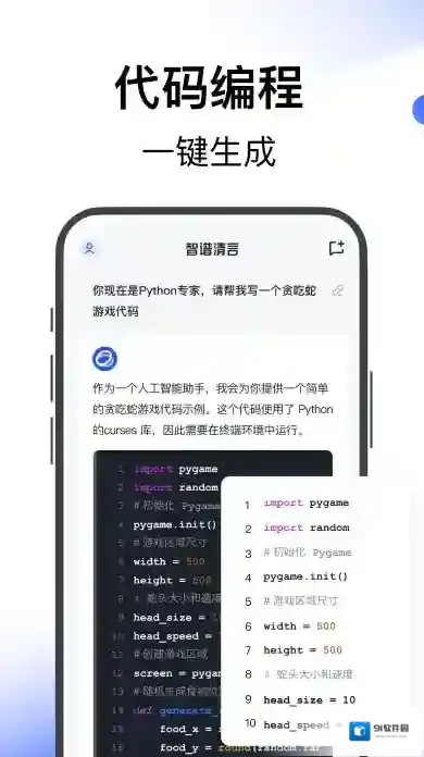 智谱清言是一个能帮你进行语音对话智能生成话语的软件,基于中英双语大模型chatglm开发,帮你“聪明一点”,每天少工作一小时。具备当前很多的丰富能力。