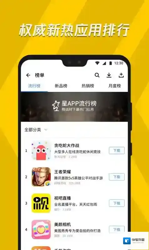 应用分类明确,提供下载量与各类热门排行榜供你参考。