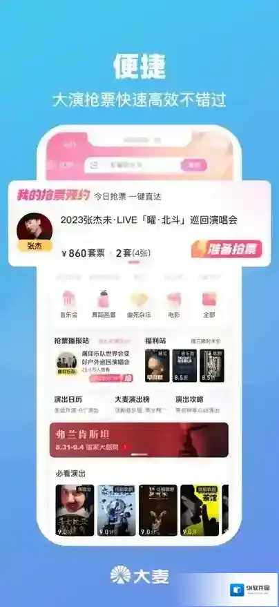 2、大麦手机客户端可以为广大网友们在线预订各种演唱会、音乐会、话剧、体育比赛门票,既方便又实惠还效率高;