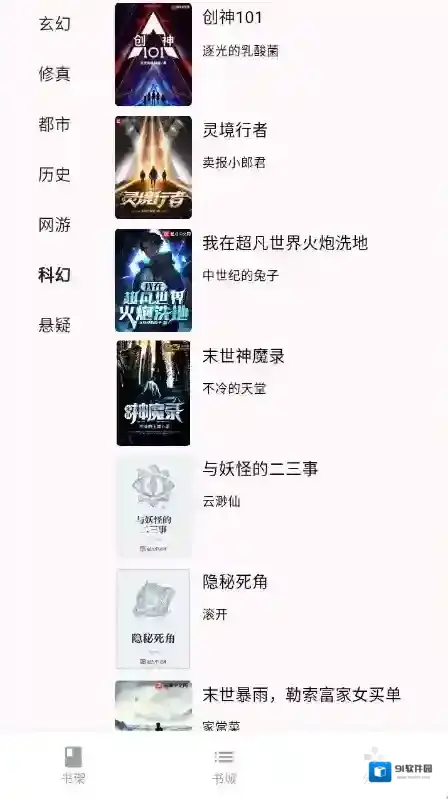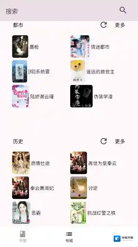 2、“书城”页面包含了很多的小说资源,玄幻、悬疑以及都市等都有。