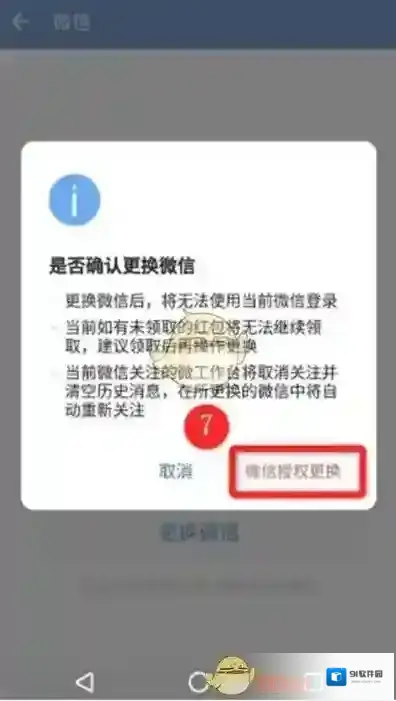 6、点击完微信之后,在弹出的对话框中,选择更换微信即可。