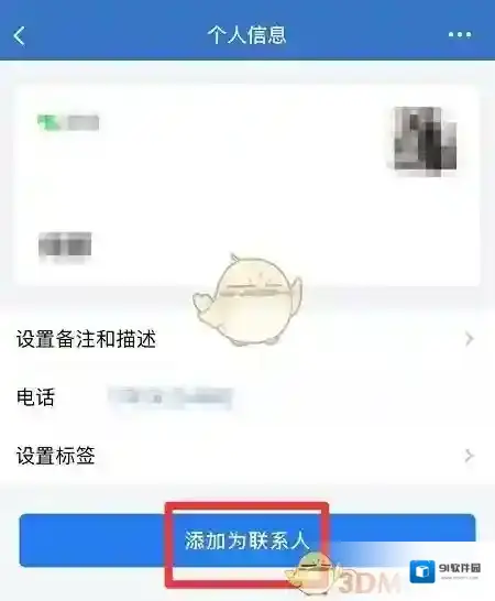 4、在搜索出的页面点击“添加为联系人”发送好友申请,等待对方通过就可以了。