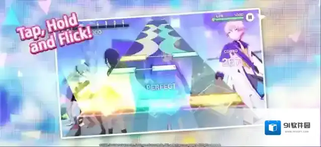 1、游戏中的音符共四种,分别为点击、轻扫、长按、跟随,黄色的音符的为关键音符,比普通音符得分更高。歌曲的判定也分为四种,得分由高到低分别为PERFECT、GREAT、GOOD、BAD,若未获得以上四种判定得分,则会显示MISS,其中GOOD及以下判定会导致COMBO(连击)中断,BAD及MISS判定还会使自身生命值减少,生命值为0时得分会大幅减少。