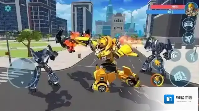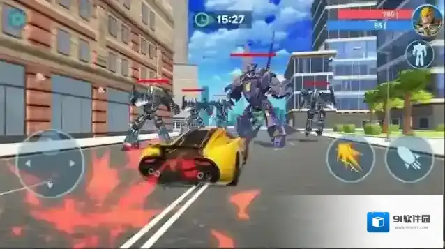 1、启动游戏后化身全能战斗机器人,可在汽车、战机、机甲等形态间自由切换,肩负保卫都市的重任。