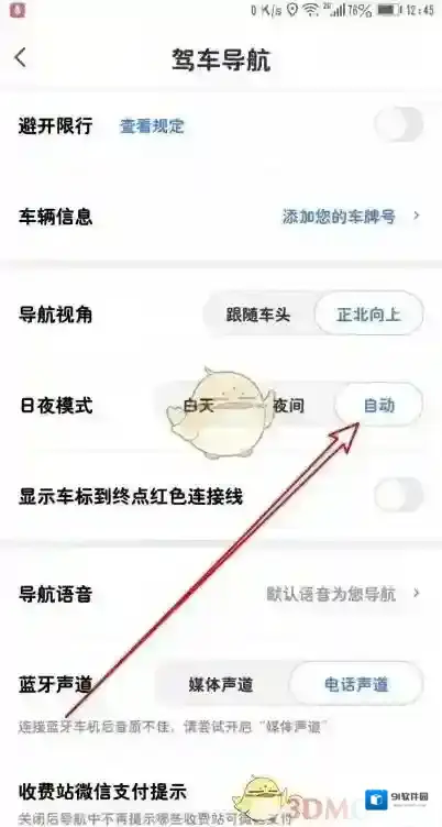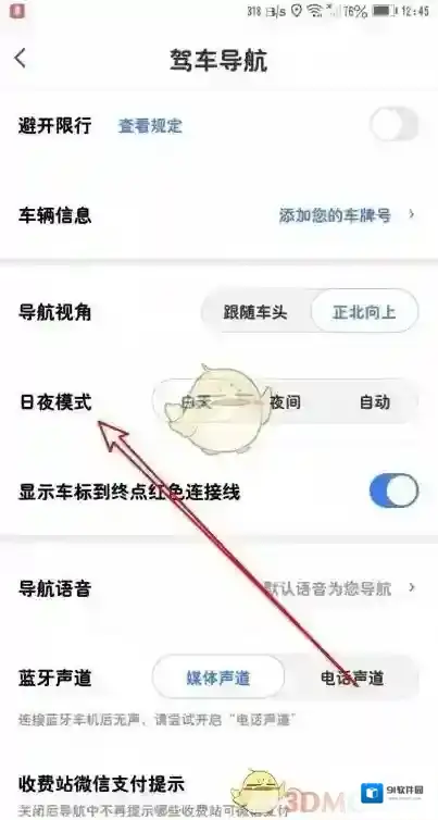 4、接下来在打开的页面中找到“日夜模式”的菜单项。