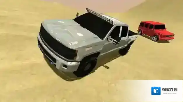 1、进入沙漠场景,选一辆越野车辆(如银色皮卡),熟悉虚拟按键或操作方式,准备开启越野挑战。