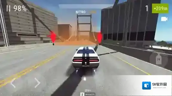 4、正式开始后左边控制车辆前进的方向,右边是漂移和氮气冲刺,游戏的操作方式有很多,可以在设置里更换。