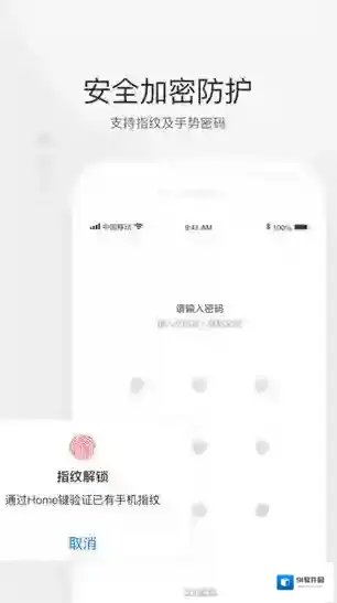 3、安全加密防护,支持指纹及手势密码