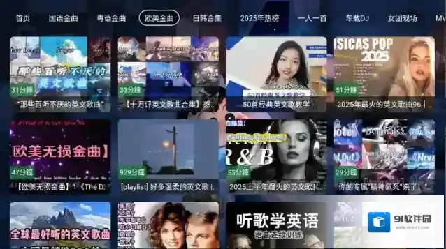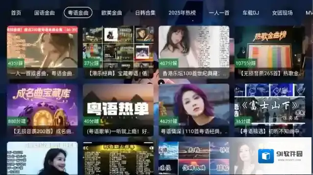 2、就会出现很多的音乐资源,国语金曲、粤语金曲以及日韩合集等类型。