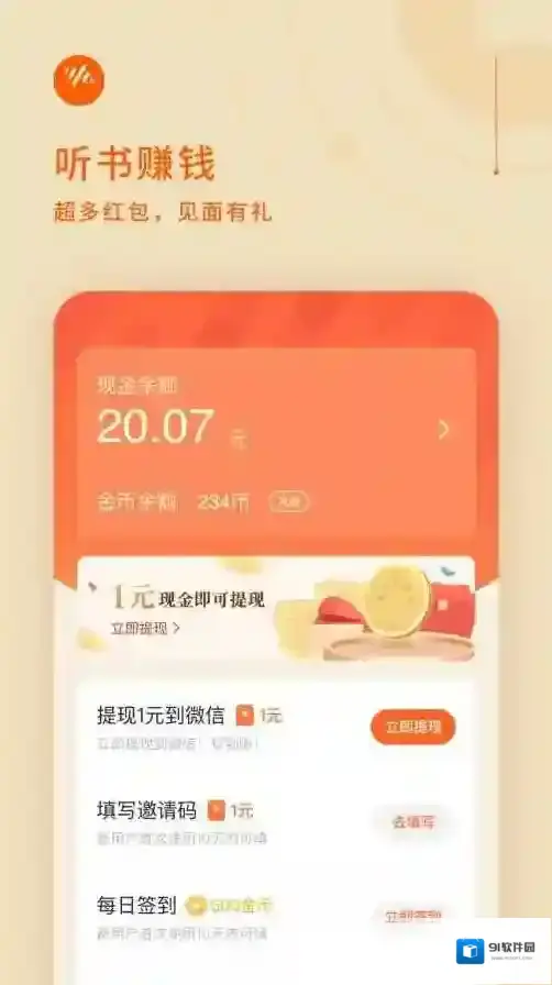 新人就有大红包!每天听书赚现金、签到赚现金、开宝箱赚现金……红包福利应有尽有,随时提现!