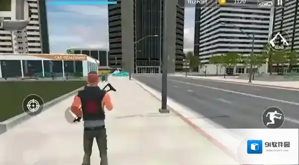 2、后续任务“Go to the marked point0/2”,前往街道上绿色汽车旁的蓝色光圈,靠近车辆,推进任务进度,留意城市建筑环境。