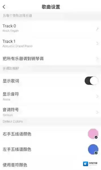 可以根据自己的喜好,设置软件播放乐器、乐谱展示、音符颜色、高低音谱显示,歌词显示等等