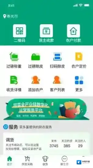 菜多富合作社端app最新版首页有各种功能,包括二维码、货主收款、添加农户、农户付款,还有过磅称重、过磅除皮、扫码除皮等,供货采货界面用户可以联系供货方和采购方,方便交流、提高办公效率等。
