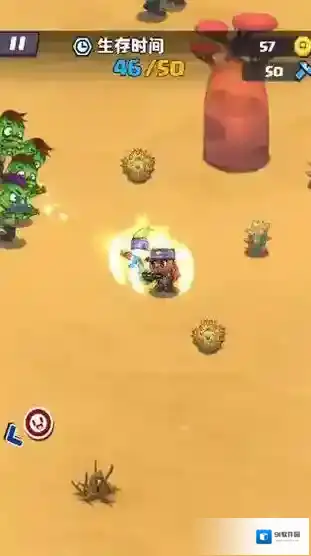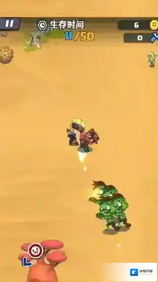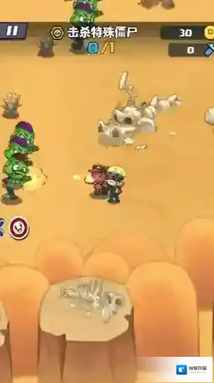 2、遇僵尸(绿色)时,瞄准射击(红箭头方向),优先清除挡路敌人。