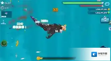 3、进入地图后,控制鲨鱼移动进行捕食,但请注意,只能捕捉比你小的海洋生物。