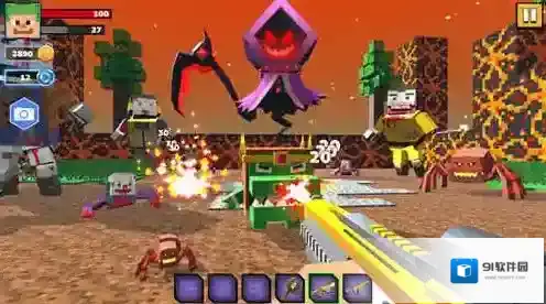 2、皮肤收集乐趣:通过成就系统解锁30+武器皮肤,“像素情人节”限定皮肤射击时会飘落爱心特效,“复古电视”皮肤使画面呈现雪花噪点风格,满足收集癖与个性化需求。