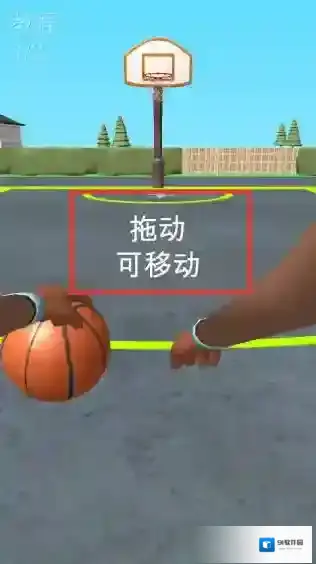 2、教程阶段,按提示拖动可移动篮球,调整投篮角度、力度,熟悉操作机制。