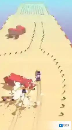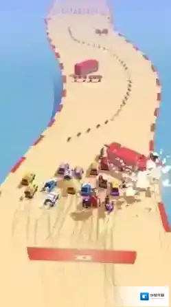 3、在港口环形赛道,跟随箭头,与其他车辆竞速,绕圈冲刺终点。