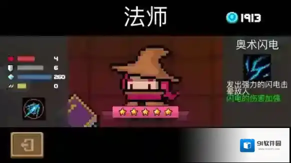技能1:奥术闪电:发出强力的闪电眩晕被击中的敌人。满级后闪电伤害增加。