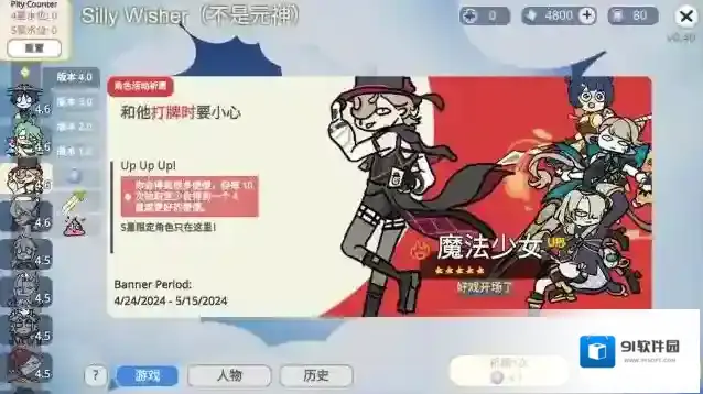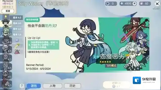 Silly Wisher,是B站UPsketchi自制的一个抽卡小游戏,玩家可以抽取到原神里的角色,游戏包含了从开服到现在所有版本的角色和武器卡池,而且所有资源全部免费,不用花费一分钱,玩家可以想抽那个角色就抽哪个角色,游戏的概率也很还原,还在等什么,快来下载看看你能多少抽出金。
