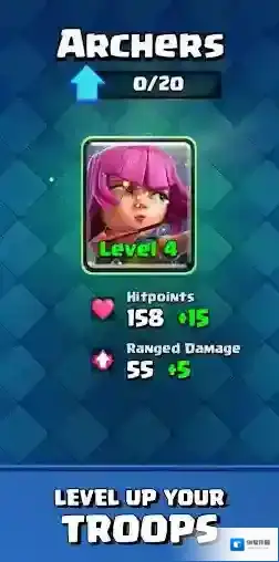 4、打造并升级您的卡牌收藏,包括《Clash Royale》皇室成员和数十个来自于《部落冲突》的部队、法术和防御设施。
