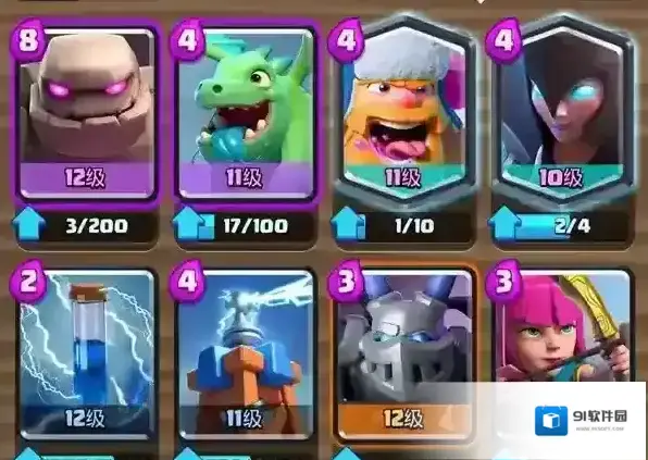 4、3阶竞技场也是一样,选卡的话选择野蛮人和重甲亡灵。3阶打完后就可以去4阶了,4阶竞技场给的卡牌还是很有性价比的,4阶打完就是5阶,5阶只用选择野猪骑士就可以了。