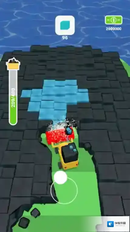 2、靠近石块后就可以开始挖掘,并将材料装到车中,左侧可以显示对应的容量。