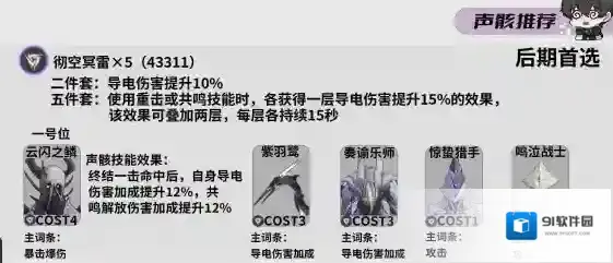1、推荐玩家在前期选择二套彻空冥雷、二套不绝余音(43111)。