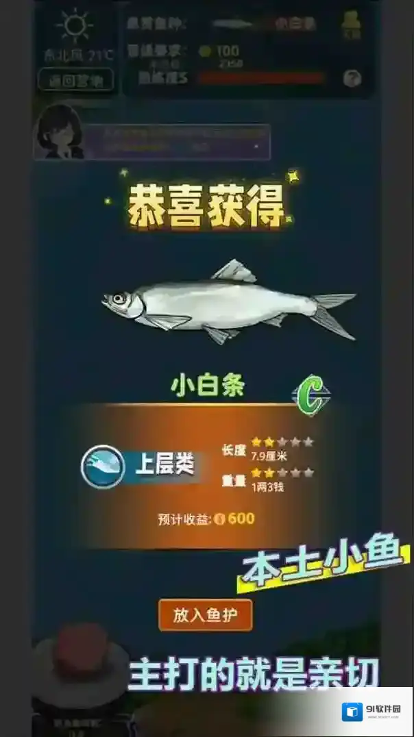 3、丰富的道具系统:玩家可以在游戏中使用各种道具来提高钓鱼的成功率,如鱼饵、鱼竿等,这些道具可以在商店中获取。