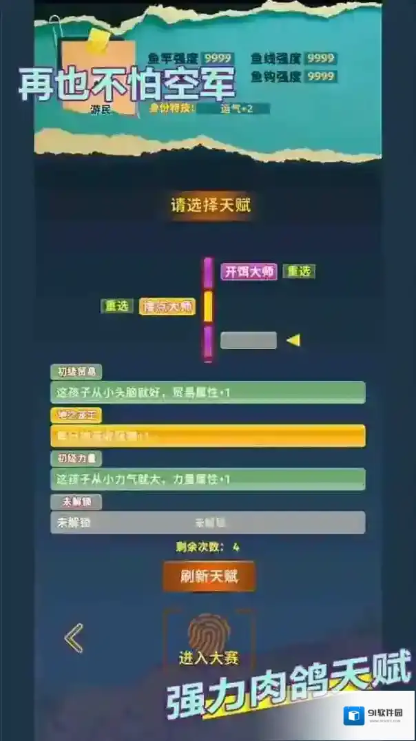 2、随机转生天赋:游戏中的转生系统让玩家能够获得随机的天赋,这些天赋可以增强玩家的钓鱼能力,增加游戏的不确定性和趣味性。