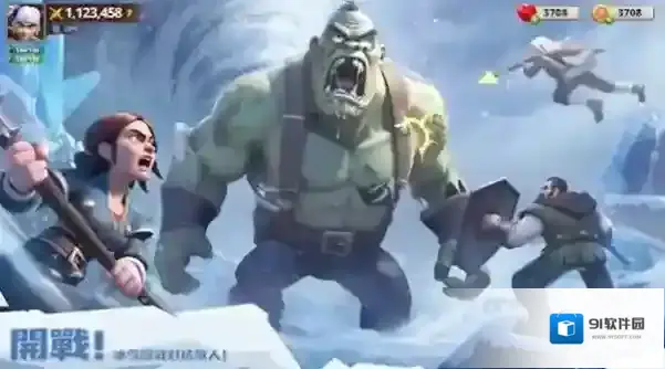 1、点击開戰,进入冰雪战场,操控角色(拿武器),配合队友(绿巨人、弓箭手)攻击敌人。