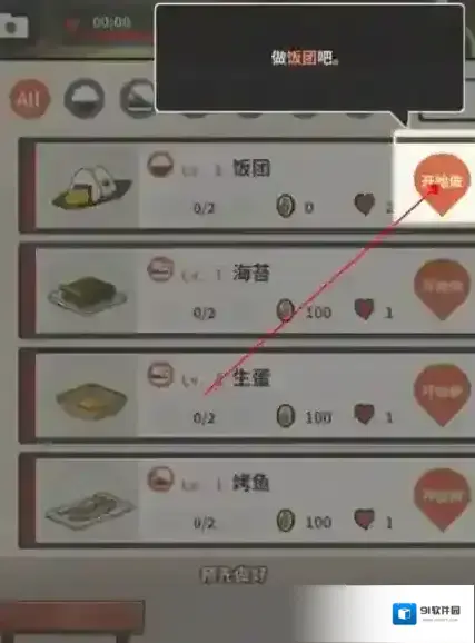 4、有顾客来店里的时候,玩家就需要准备食物,点击料理,开始烹饪制作。