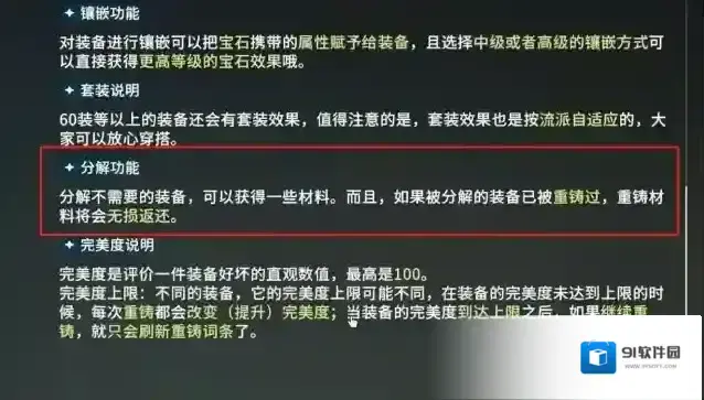 已经被重铸过的装备也可通过该功能进行分解,且分解后会返还重铸资源,降低玩家们资源的消耗量,所以玩家们在拿到装备后可放心重铸,待需要更新换代时再直接将旧的装备重铸。此外,各位也能利用该机制,让好的装备胚子先进行重铸,要是重铸结果满意则直接留下它,如果重制的结果不是自己想要的,便可把它分解掉,令自己能无损筛选出能为自己带来更大加成的装备,在实际游玩时会为玩家们带来很多便利。