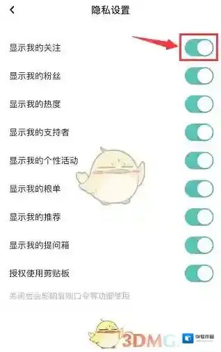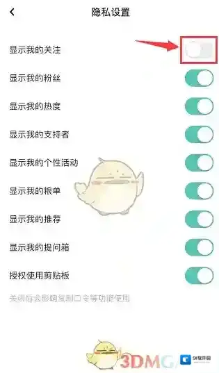 3、关闭显示我的关注右侧开关即可。