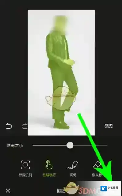 2、使用智能抠图,使用橡皮擦功能来擦掉头部以外的位置。