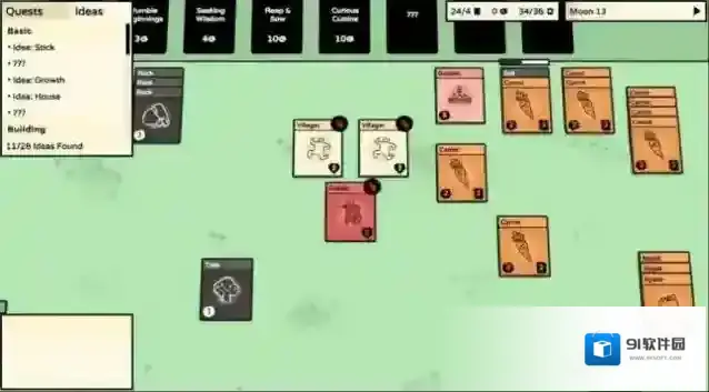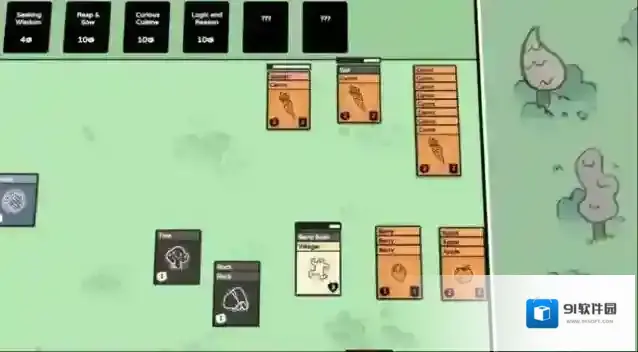 4、将不同的卡牌与物品堆叠在一起可以去获得众多的物品,将村民们放置在不同的物体上就可以获取不同的物品。