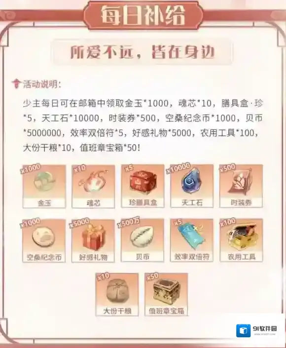 1、陪伴版提供下载归家福利,玩家登录游戏即可在邮箱中领取魂芯*100,金玉*1万,天工石*2万,好感礼物*5200,贝币*520万。