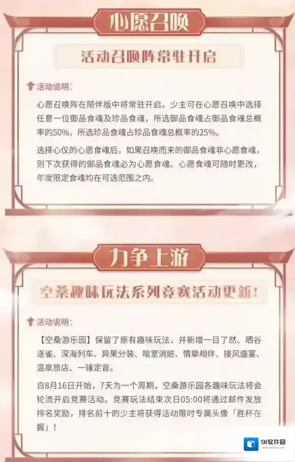 5、游戏保留了原版的趣味玩法空桑游乐园,在原有基础上进行了新增,召唤角色方面心愿召唤在陪伴版中也常驻开启。