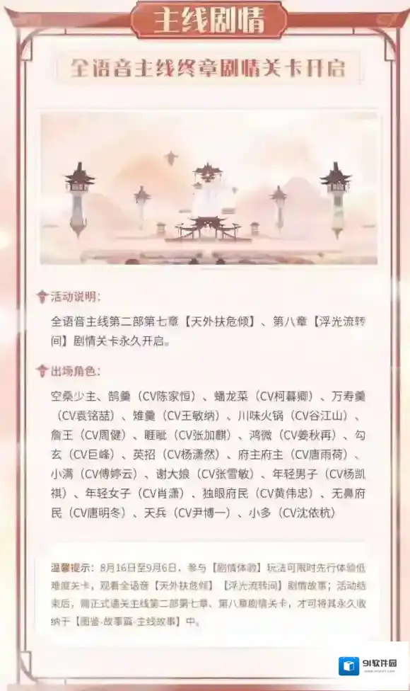 3、游戏剧情关卡永久开启,主线剧情采用全语音,更有超多知名声优坐镇。