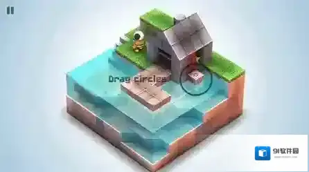 2、接着,翻转场景,此时会出现一个新的圆圈,圆圈内有一个机关,将这个机关移动到地面这边,并踏上它。