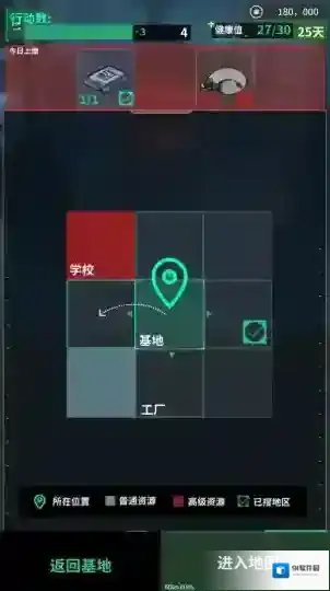 5、每一次移动都会消耗一点行动点,行动点全部消耗完毕后就需要回到基地。完成任务后就可以下班结束一天,当你存活的时间越长能使用的行动点数就越多。