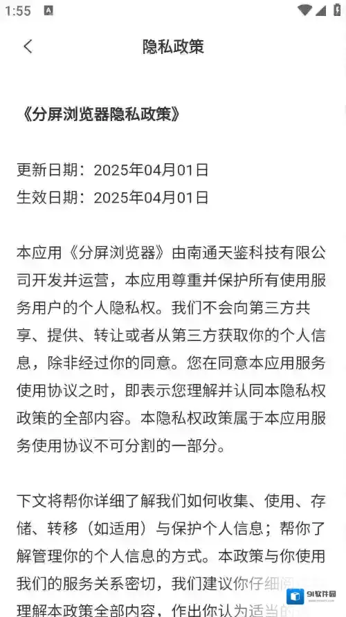 1、首先在梦马内容库下载分屏浏览器app,查看并同意隐私政策与用户协议。