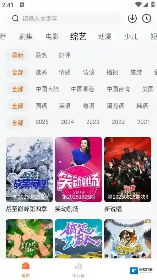 2、进入到首页顶部栏中汇集了很多的影视资源类型,电视剧、电影以及综艺等类型。