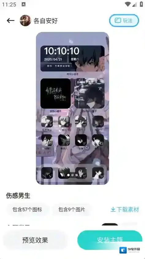 4、点开喜欢的主题,可以预览效果,也可以进行安装主题。