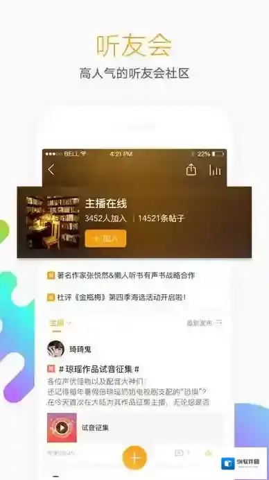 4、交流社区:听友可以关注感兴趣的主播或有共同收听兴趣的其它听友,关注后可以获得他们的收听推荐,可以即时交流收听感受。